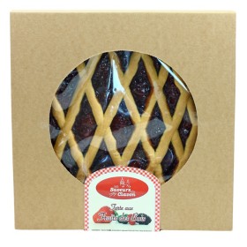 Fabriquée artisanalement, notre tarte des Alpes est une pâtisserie spécifique des Alpes du Sud. Elle est fourrée à la confiture et recouverte de croisillons de pâte. Tièdes ou froides, ces tartes se consomment en fin de repas, au petit déjeuner, avec un café, ou au goûter. ingrédients : Farine de blé, préparation nappage figues (sirop de glucose fructose, purée de figues min 5% du total des ingrédients, sucre, gélifiant : pectine, régulateur d'acidité : acide citrique, conservateur : sorbate de potassium, arômes), sucre, beurre, noix 3%, œufs, agents levants (tartrate de potassium, diphosphate disodique, amidon de maïs), arômes. Peut contenir des traces de lait, soja. - Commentaires