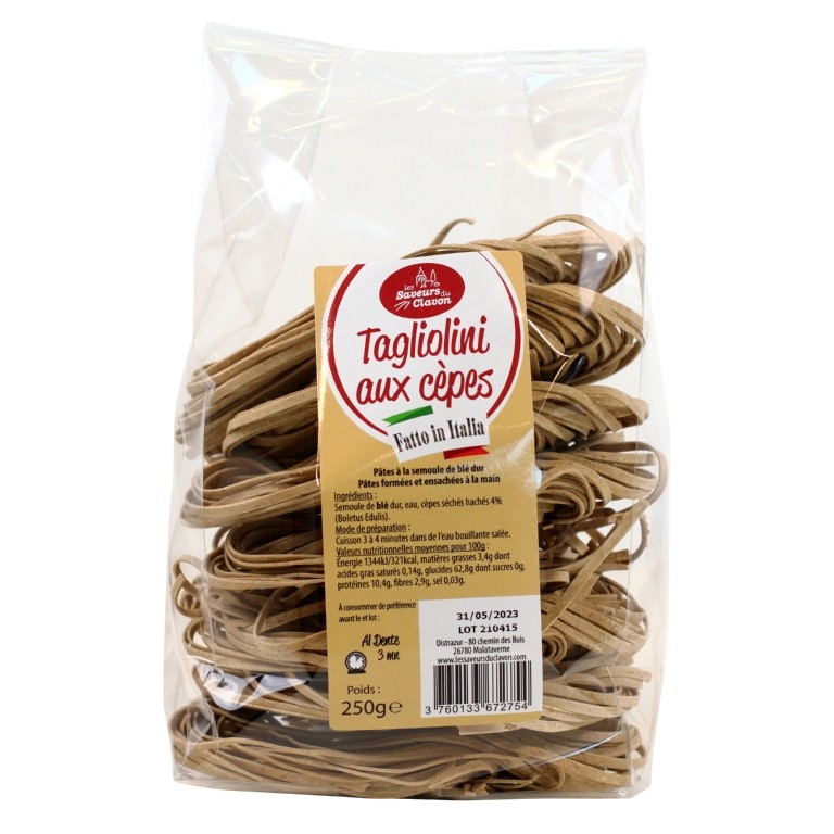 Semoule de blé dur, eau, cèpes séchés hachés 4% (boletus Edulis).